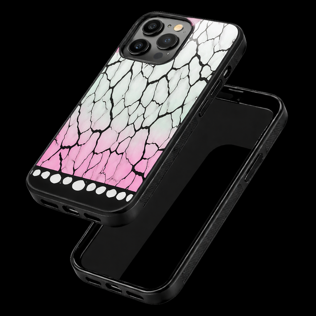 La funda presenta un fondo degradado de rosa suave a claro, combinado con un patrón geométrico tradicional japonés , que simboliza gracia, disciplina y fuerza. El marco negro impecable realza la obra de arte, dándole al teléfono un aspecto audaz y premium. El diseño se siente ligero, elegante y moderno, perfecto para el día a día o para la moda de temática anime.